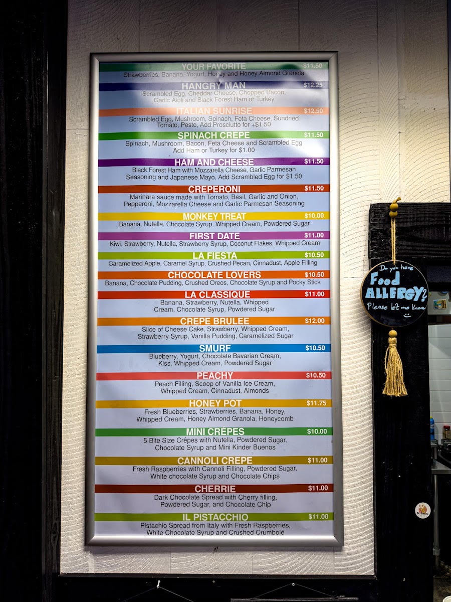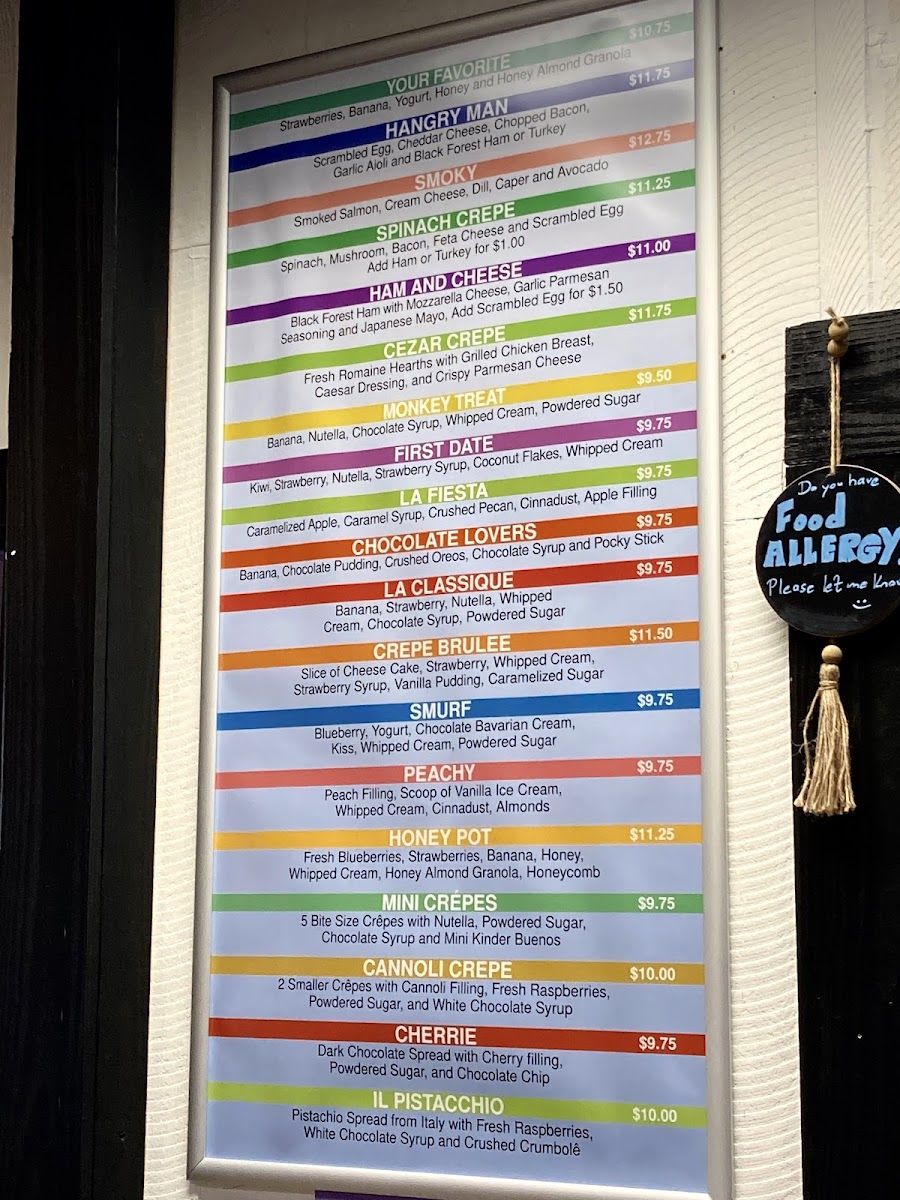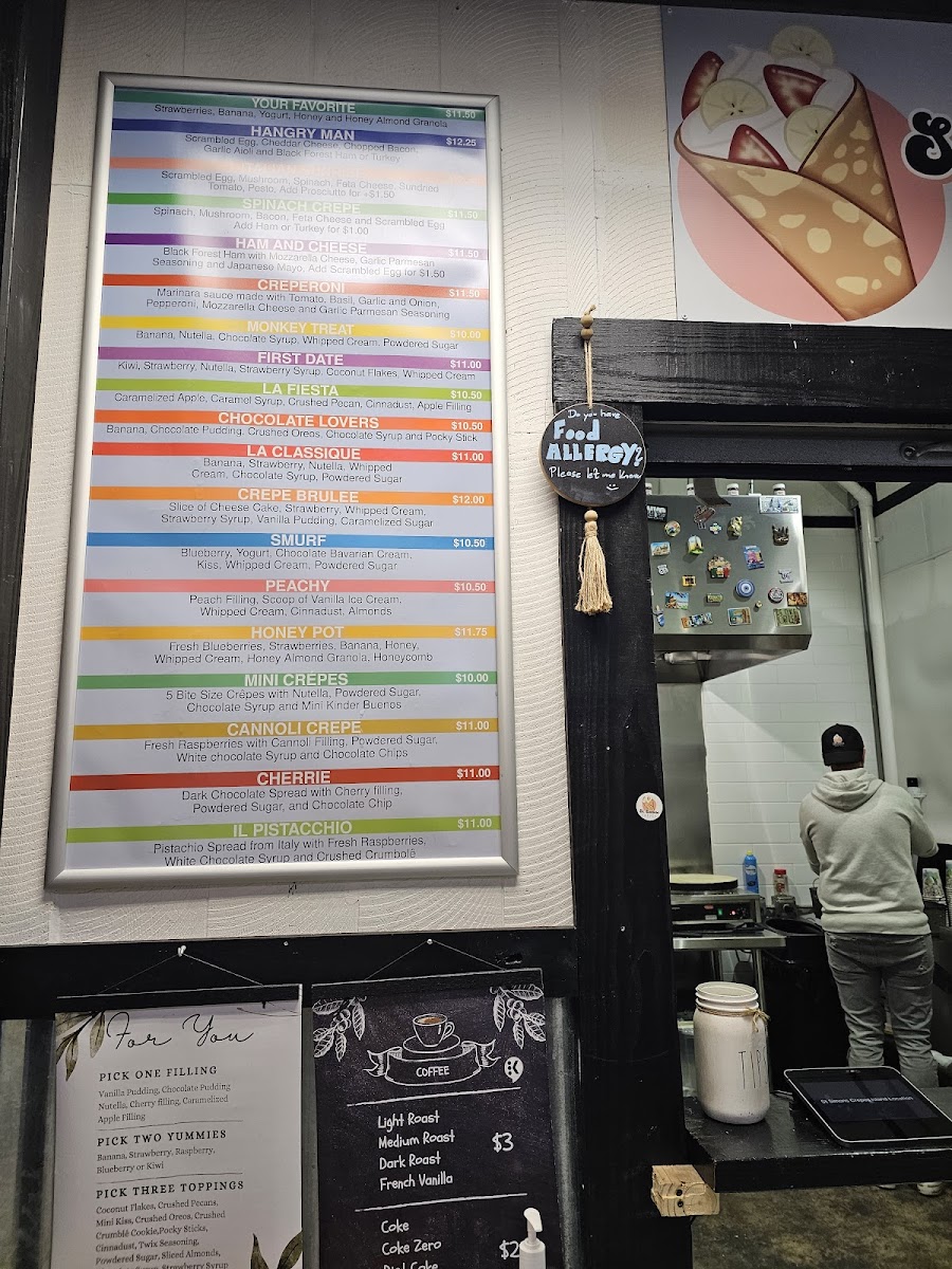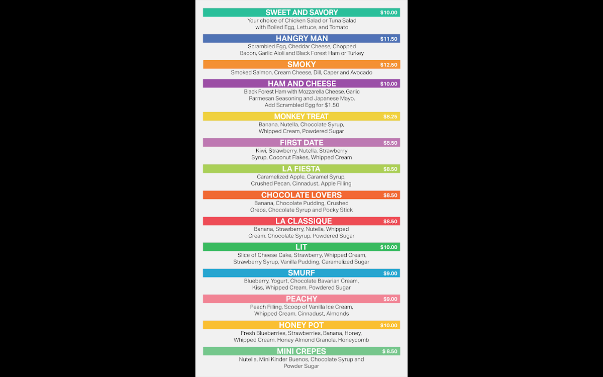 Our menu features a variety of tantalizing options, including the hearty Hangry Man and the delightful Spinach Crepe, alongside enticing sweet choices like the Honey Pot and Crepe Brulee. Customers rave about the generous fillings and exquisite flavors, making each bite a memorable experience.